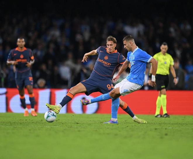 其次,国米输在了教练能力的较量上。作为前任的老狐狸孔蒂对于国米阵容的短板自然是门儿清,于是便在排兵布阵上进行了针对性安排。特别是安排速度快、运动能力出色的内雷斯担任伪中锋,直接对位国米的高龄中卫阿切尔比,迪洛伦佐在赛后采访中也提到了这一点:孔蒂安排内雷斯进行纵深进攻,尤其是让他和阿切尔比一对一。当他突破防守时,我们的中场球员插上做得非常出色。他们(麦克托米奈和安古伊萨)很擅长这方面,今晚我们也打进了两粒非常精彩的进球。